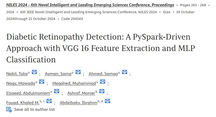 The current study used cutting-edge techniques to experimentally test the early diagnosis of diabetes via retinal scans. The goal was to enable effective disease prediction and management by facilitating quick and precise medical diagnostics. Three processes were involved in the development of a Diabetic Retinopathy (DR) diagnosis tool: feature extraction, feature reduction, and image classification. The research employed Apache Spark, a distributed computing framework, to manage large datasets and enhance the performance of the multilayer perceptron (MLP) model via hyperparameter tuning and cross validation. Utilizing resources more effectively and achieving faster training times were made possible by Apache Spark. To support data-driven decision-making, the study also emphasized the significance of distributed platforms for analyzing large amounts of real-time diabetic data. To produce discriminative features for classification, the VGG16 architecture was employed for feature extraction. In the last epoch, the MLP model performed remarkably well, with an accuracy of 97%. The study also underlined the value of distributed platforms for data-driven decision-making by analyzing substantial volumes of real-time diabetes data. © 2024 IEEE.