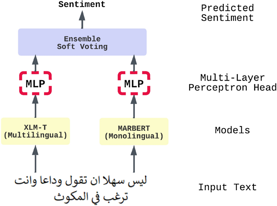 Sentiment analysis is a common and challenging task in natural language processing (NLP). It is a widely studied area of research; it facilitates capturing public opinions about a topic, product, or service. There is much research that tackles English sentiment analysis. However, the research in the Arabic language is behind other high-resource languages. Recently, models such as bidirectional encoder representations from transformers (BERT) and generative pre-trained transformer (GPT) have been widely used in many NLP tasks; it significantly improved performance in NLP tasks, especially sentiment analysis. However, Arabic was not a priority in their development. Several models focusing on Arabic have recently begun to pave the way for the latest technologies, such as ARBERT, MARBERT, and others. We used multiple datasets for training and testing-ASAD-A Twitter-based Benchmark Arabic Sentiment Analysis Dataset, ArSarcasm-v2, and SemEval-2017. We propose an ensemble learning approach that combines the multilingual model(XLM-T) and the monolingual model(MARBERT) to overcome the intricacies of the Arabic language that are difficult to address with a single model. It also addresses the problem of imbalanced data using a combination of focal loss and label smoothing. The experiments showed that our ensemble learning approach outperforms the state-of-the-art models on all the used datasets. © 2022, The Author(s), under exclusive licence to Springer-Verlag GmbH Austria, part of Springer Nature.