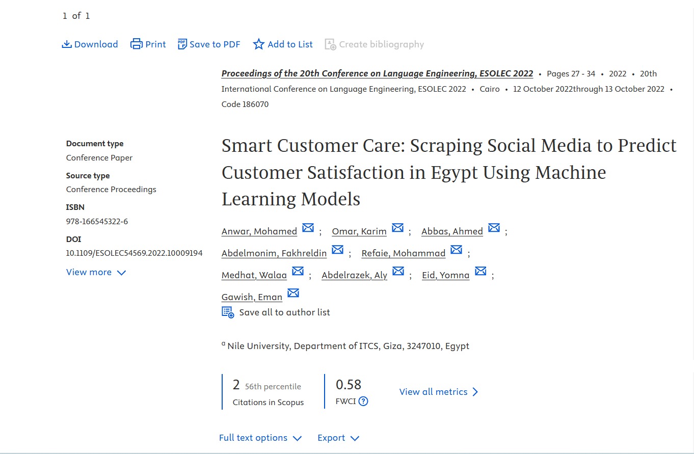 Smart Customer Care: Scraping Social Media to Predict Customer Satisfaction in Egypt Using Machine Learning Models